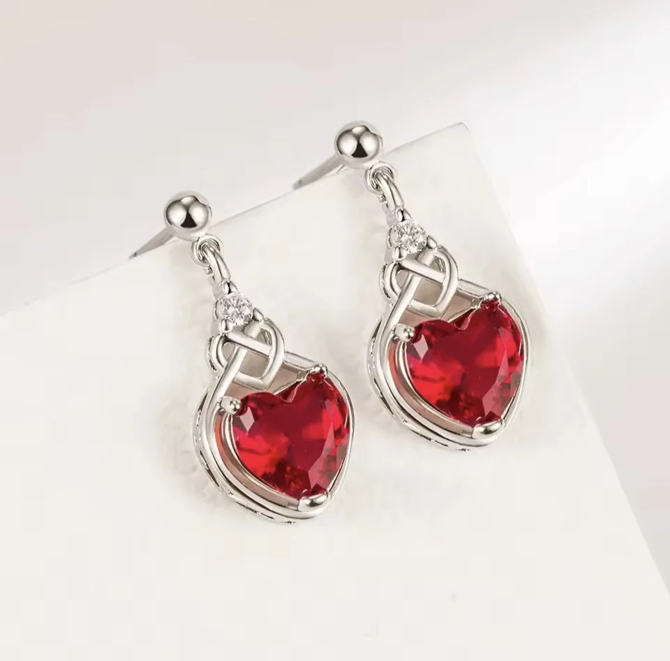 The red heart is universally recognized as a symbol of love, passion, and affection. Crafted with precision, the heart-shaped red cubic zirconia in this jewelry set glows with a deep ruby hue that captures the essence of romance. The vivid red color adds a luxurious touch, making the set ideal for expressing your emotions without words.