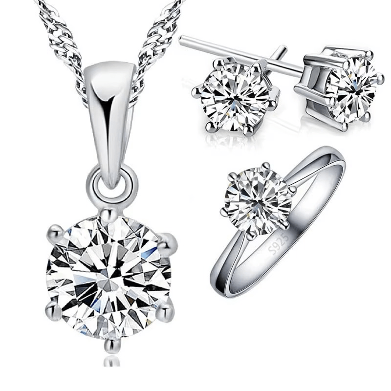 3 reviews for Sterling Silver Jewelry Set For Women Cubic Zircon Necklace Ring Stud Earrings